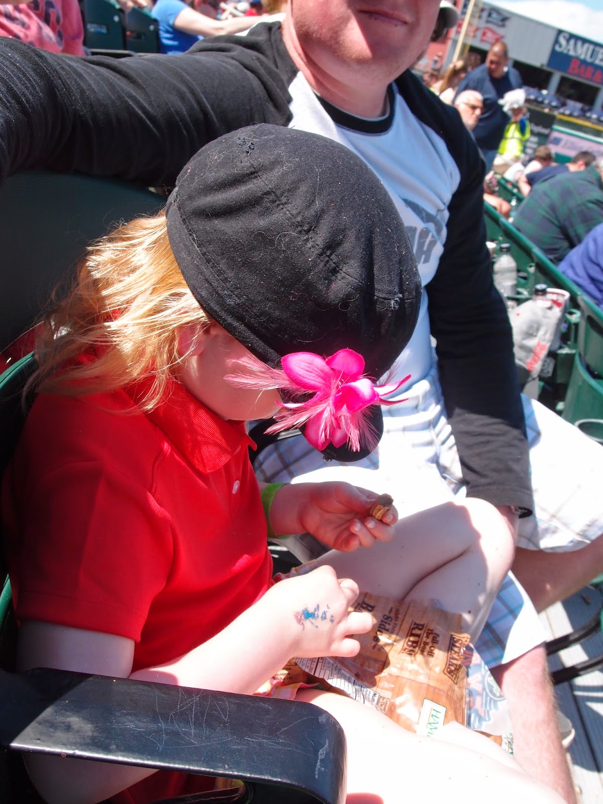 The peanuts were Kaelyn's favorite. She loved that she could throw the shells on the ground. I think she paid more attention to the peanuts than the game.
